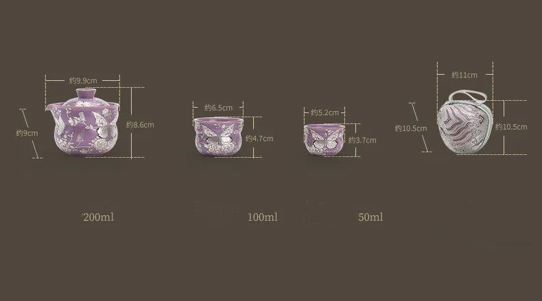 Ceramic Portable Tea Set - Ru Kiln Butterfly